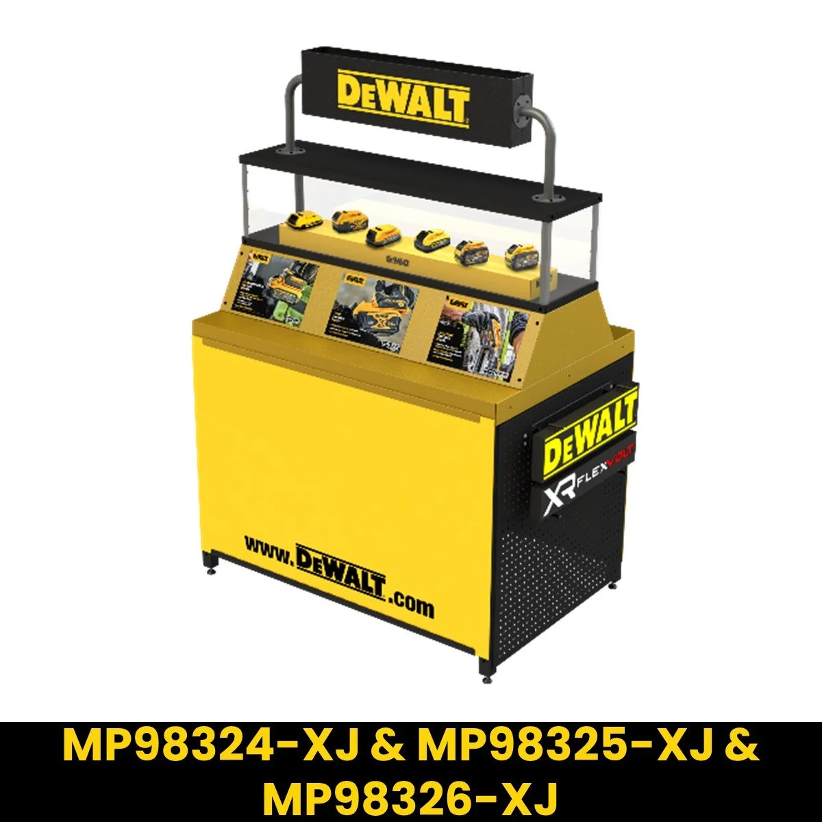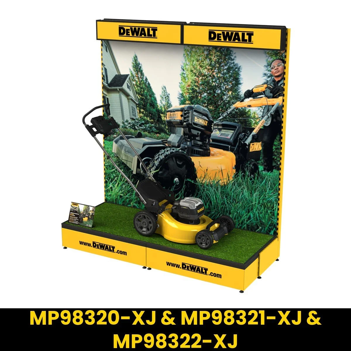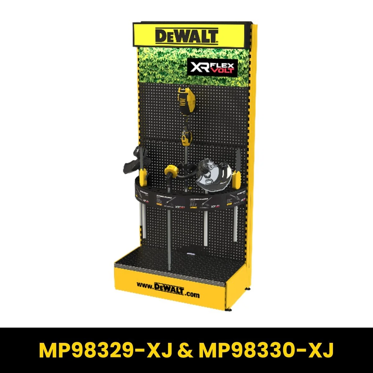Valance Gondola (1 x MP98327-XJ & MP98328-XJ), Chainsaw Battery Gondola (1 x MP98331-XJ & MP98332-XJ), & Mower Floor Standing Unit (1 x MP98323-XJ).